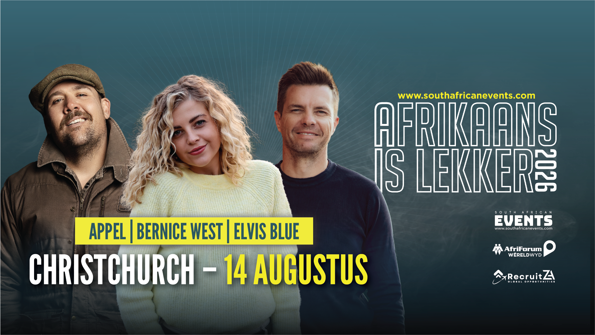 Kom kuier saam met jou gunsteling Afrikaanse kunstenaars in Christchurch, Auckland, Melbourne, Sydney, Brisbane en Perth in Augustus.